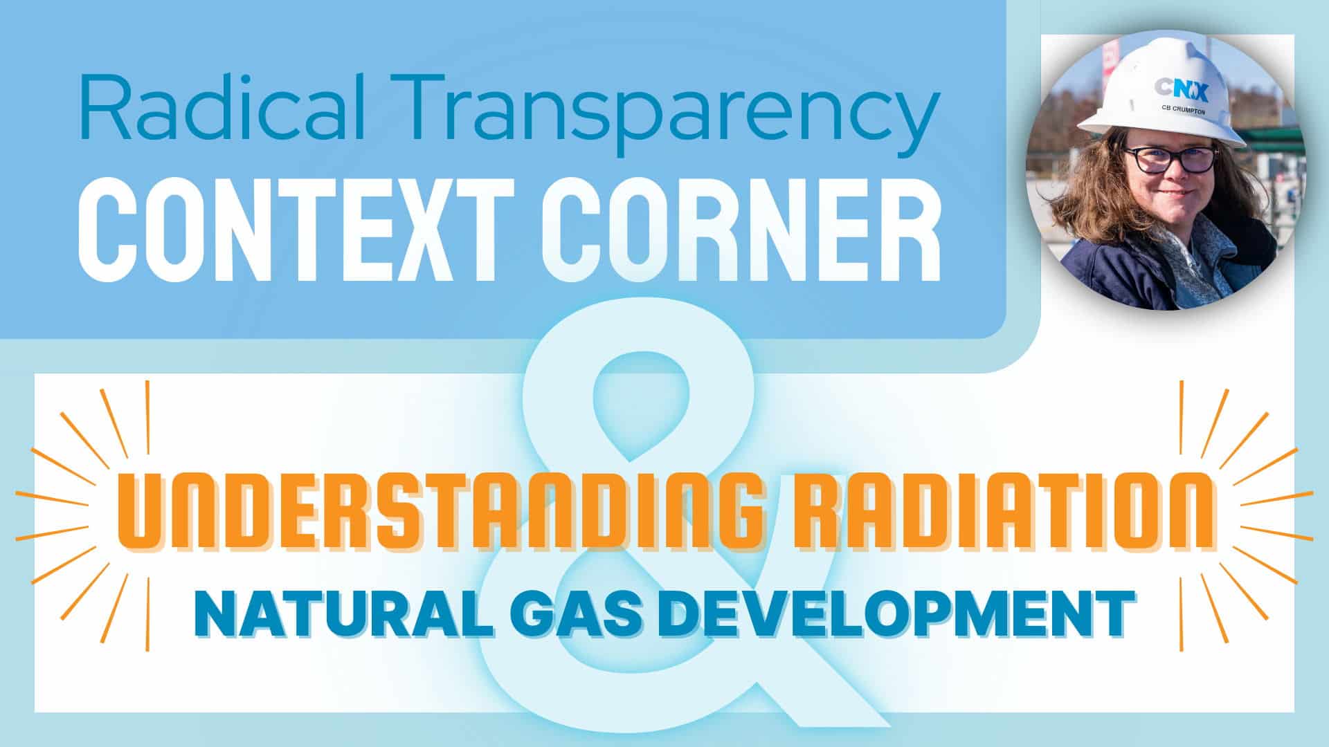 We hope this helps answer common questions about radiation associated with gas operations and protection measures CNX has in place. Stay tuned for more information as CNX advances its Radical Transparency program and continues to share data and practices openly.