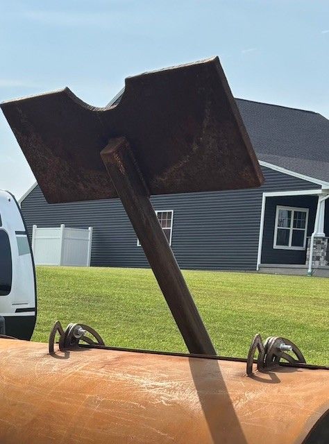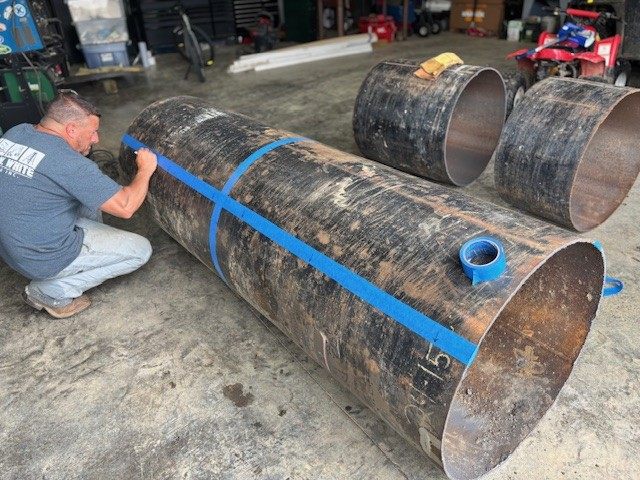 The weights were originally culvert covers from the CNX Aikens well pad that I cut in half. James White Excavating removed them during a clean-up project and donated them to the build.