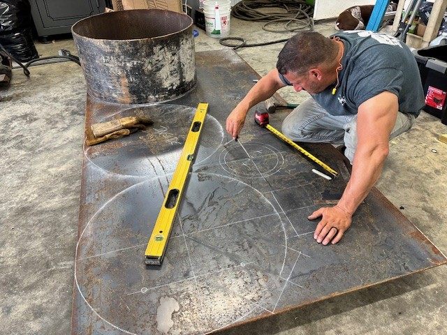 Once the material arrived at my shop in Homer City, PA, I began with the basic layout of the main chamber. No CAD drawings here. A lot can be accomplished with very basic tools, such as soapstone, tape measures, painter’s tape, a compass, basic math, and simple geometry.