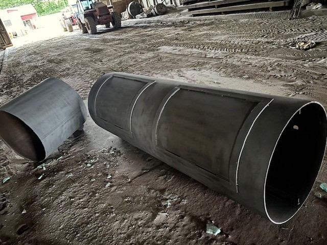 Once this process was complete, the main chamber and smokebox were sent to sandblasting to help ensure weld quality during later fabrication and to remove the bituminous coating used to protect the casing.