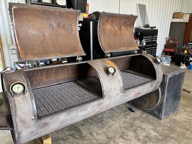 To give the smoker an additional level of customization, East Street BBQ emblems were plasma cut by hand and added to the smokebox door and the main chamber door counterweights.