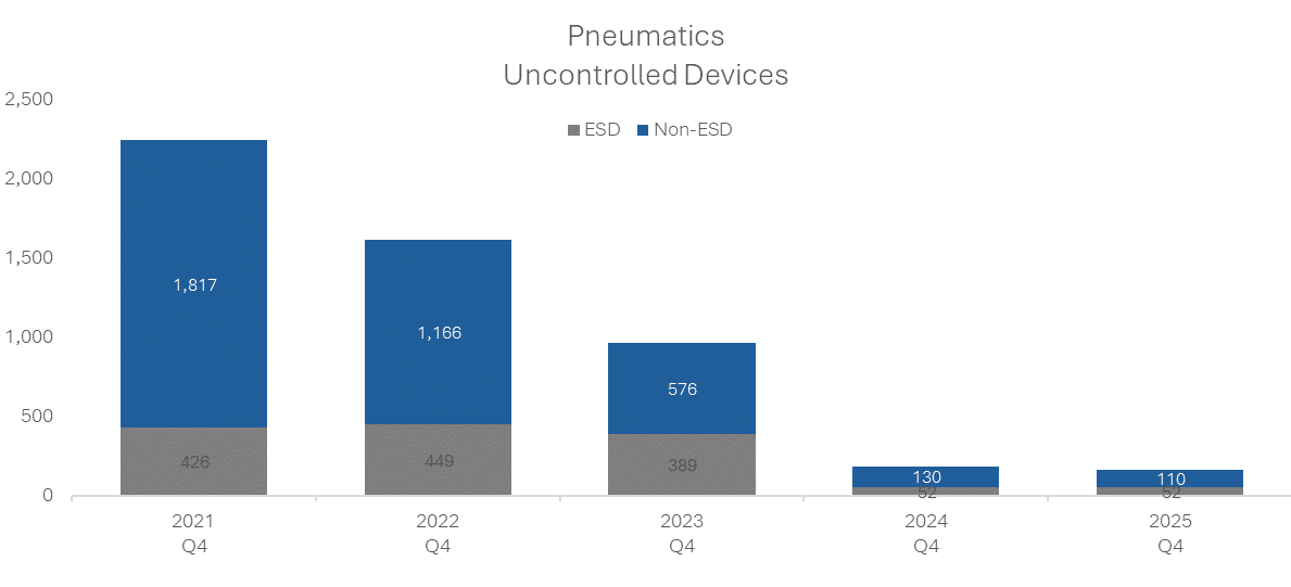 At CNX, we have been voluntarily reducing the methane emissions from our pneumatic devices. Over the three-year period since the end of 2021, we have reduced the number of non-ESD pneumatic devices by over 90%. This has been one of the main drivers of the reductions we have seen in our methane intensity and overall methane emissions over the same period.